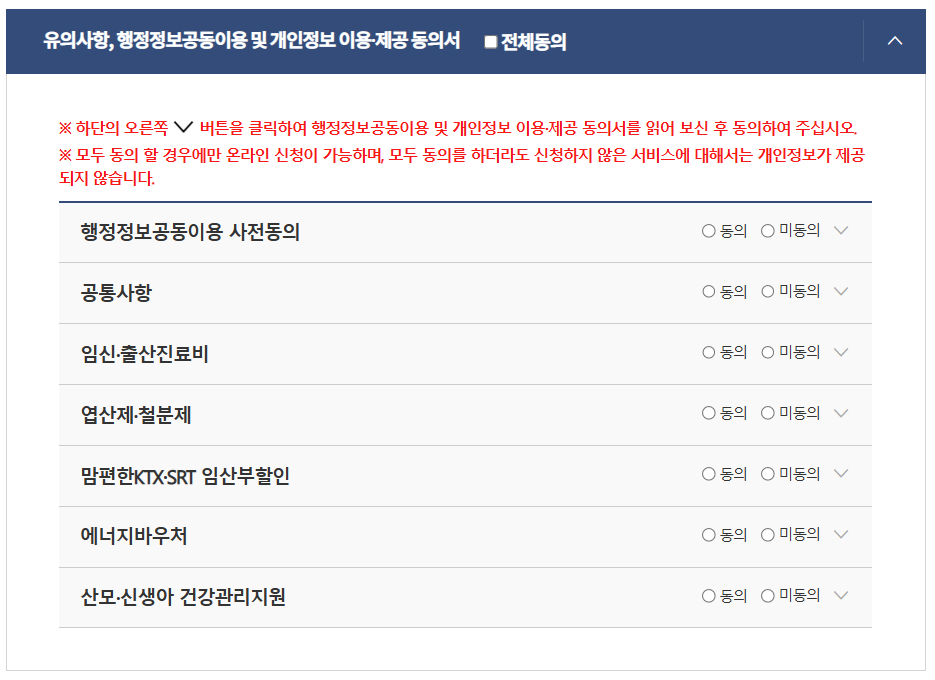 모두 동의할 경우에만 온라인 신청이 가능합니다.