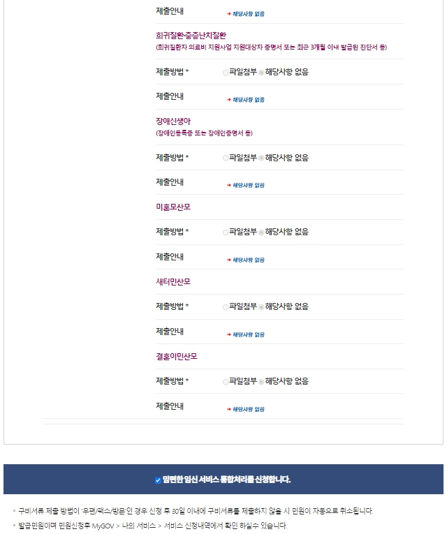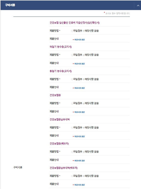 그 후에는 관련 구비서류를 제출하는 화면이 나오니